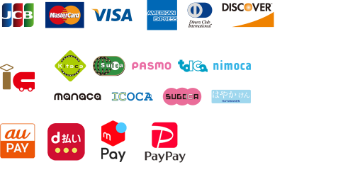 | 各種クレジットカード、交通系ICカードがご利用になれます。 |